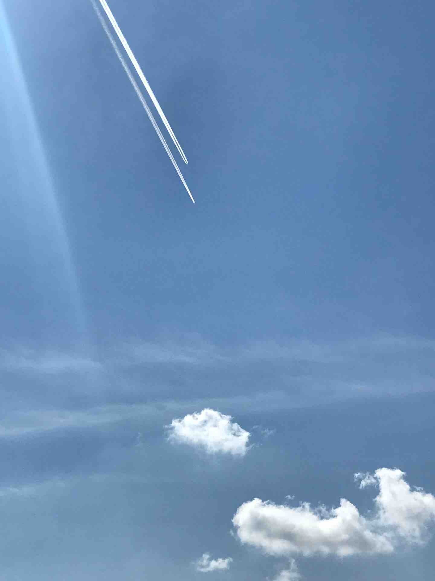 近頃は、北の大地の秋晴れの空に浮かぶ飛行機雲の写真をよく送ってくれます。