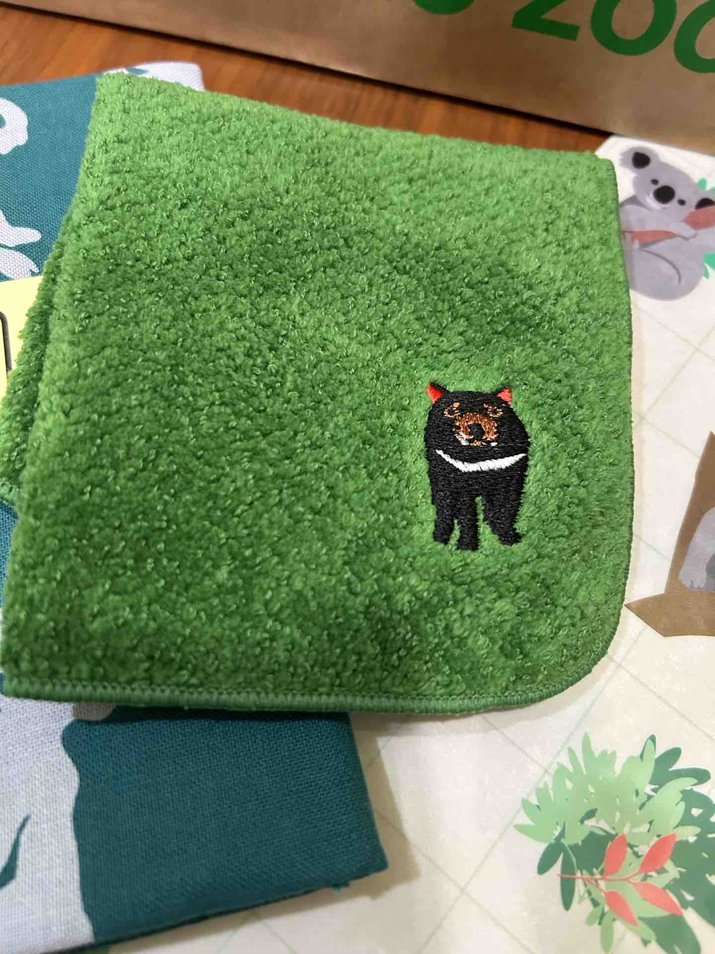 タスマニアデビルの刺繍が可愛いタオルハンカチは主人のものです。