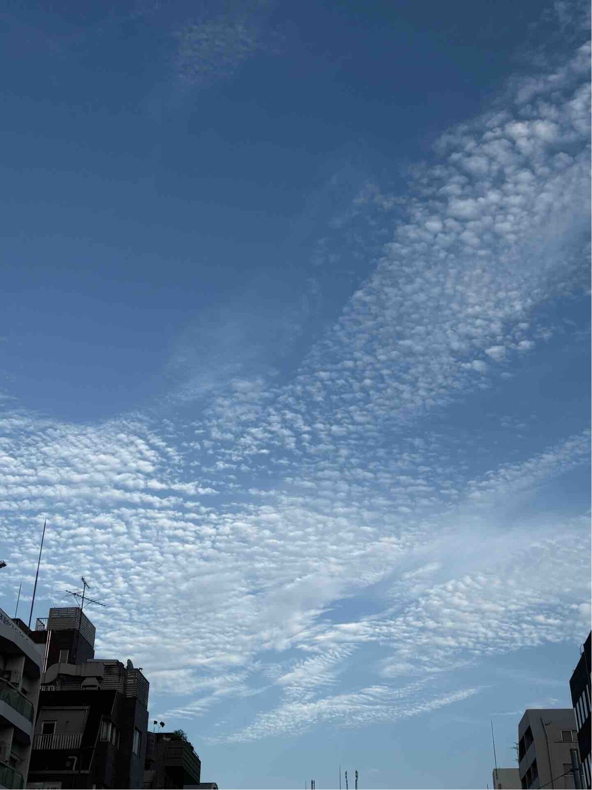 うろこ雲でしょうか?姪たちは「雲が小さくちぎれているね〜」と言っていました。